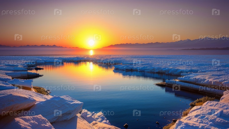Соленое озеро на закате