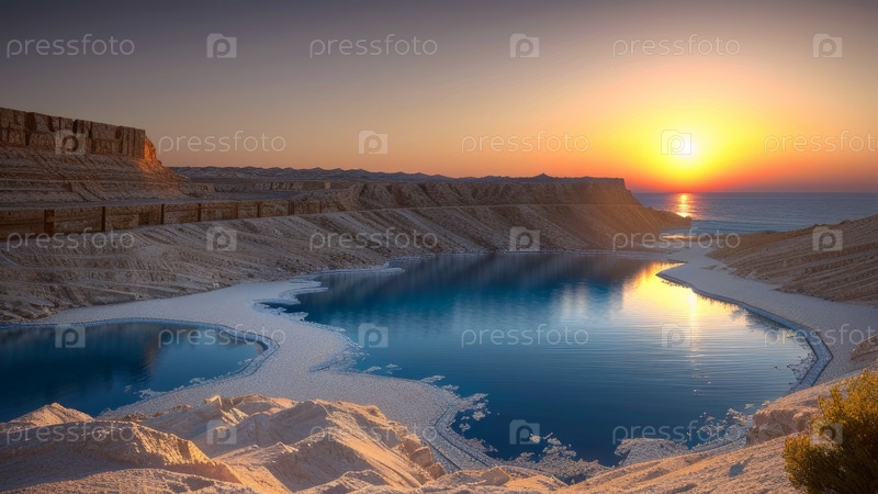 Соленое озеро на закате