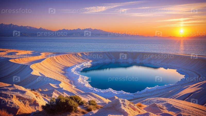 Соленое озеро на закате