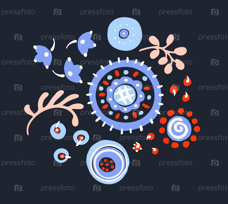 Набор этнических элементов. Бордюр представляет собой полосу с цветами, листьями, ветками, вензелями. Народная вышивка. Славянский, украинский, русский мотив. Хохлома, матрешка, дымковская игрушка. Мексиканский, индийский, цыганский ковер. Вязаное кружево