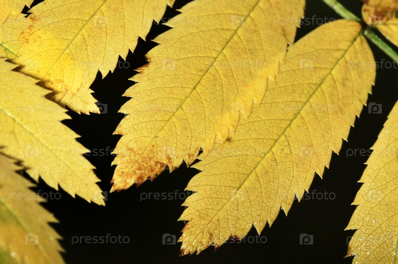 Желтые листья рябины