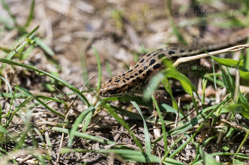 Зеленая ящерица в траве