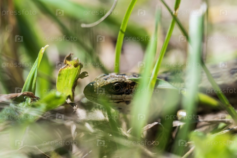Зеленая ящерица в траве
