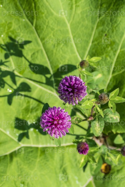Цветы клевера на зеленом листе