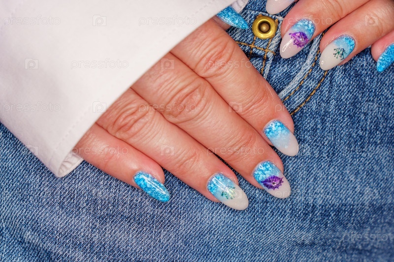 Маникюр в морском стиле. Фото с красивыми ухоженными женскими ногтями. Выборочный фокус