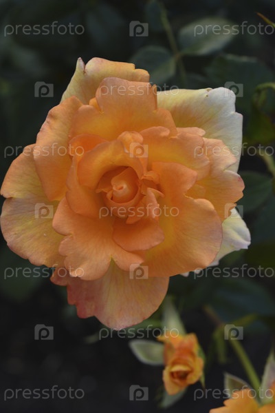 Кремово-розовые цветы розы в лучах заходящего солнца. Красивые оранжевые цветы на солнце