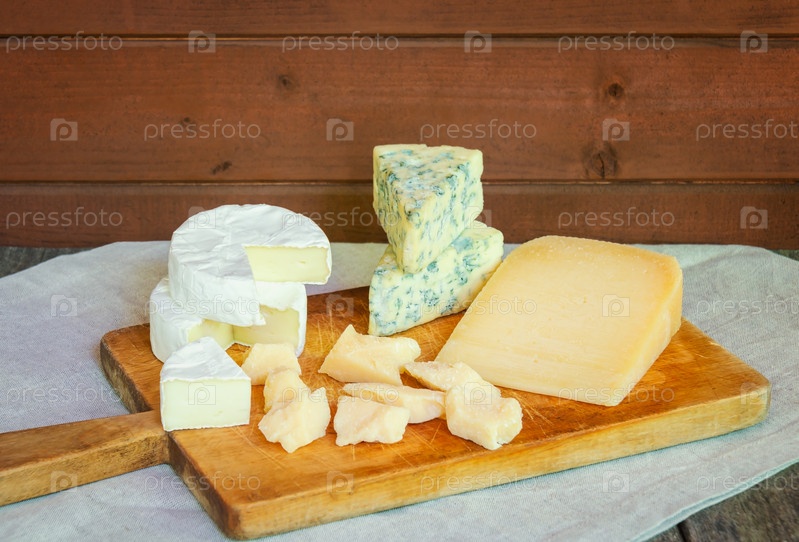 Различные виды сыра на деревенском деревянном столе