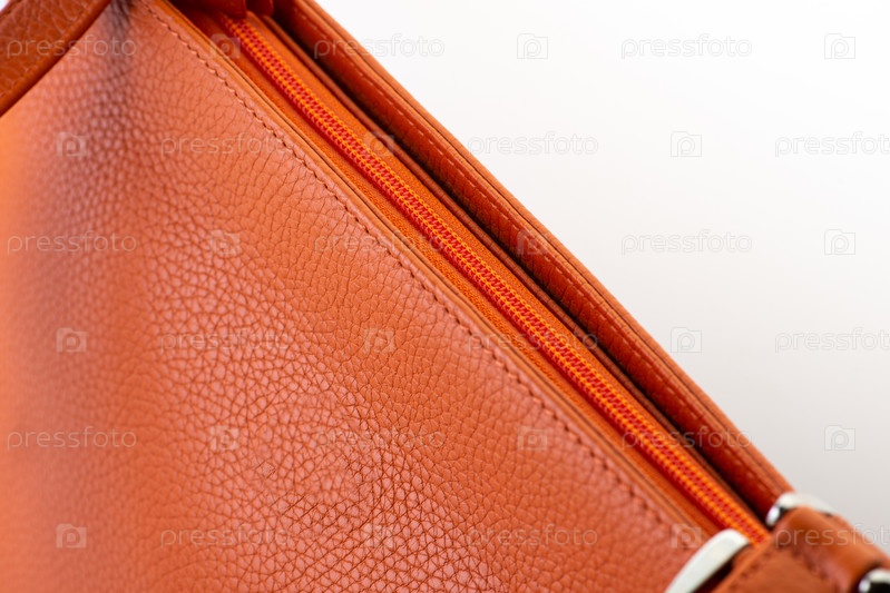 Крупный план модной оранжевой женской сумочки на белом фоне