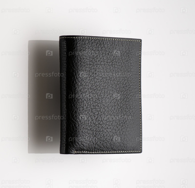 Крупный план модного кожаного мужского кошелька на белом фоне с отражением