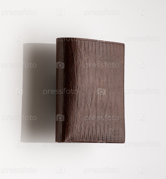 Крупный план модного кожаного мужского кошелька на белом фоне с отражением