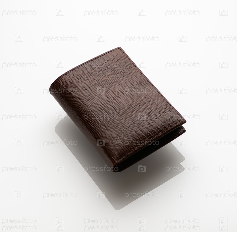 Крупный план модного кожаного мужского кошелька на белом фоне с отражением