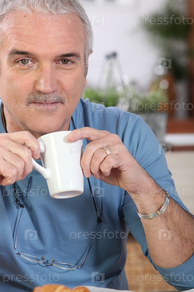Мужчина пьет кофе