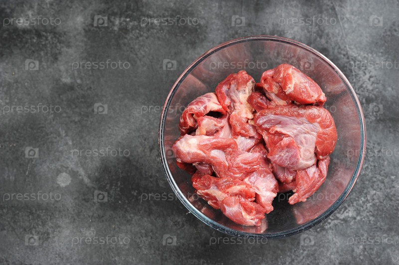 Свинина нарезанная кусочками в прозрачной миске