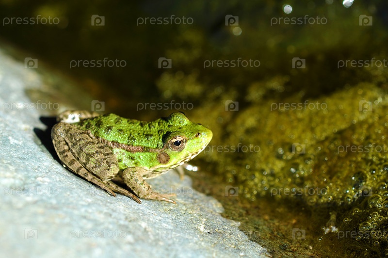 Молодая и зеленая озерная лягушка