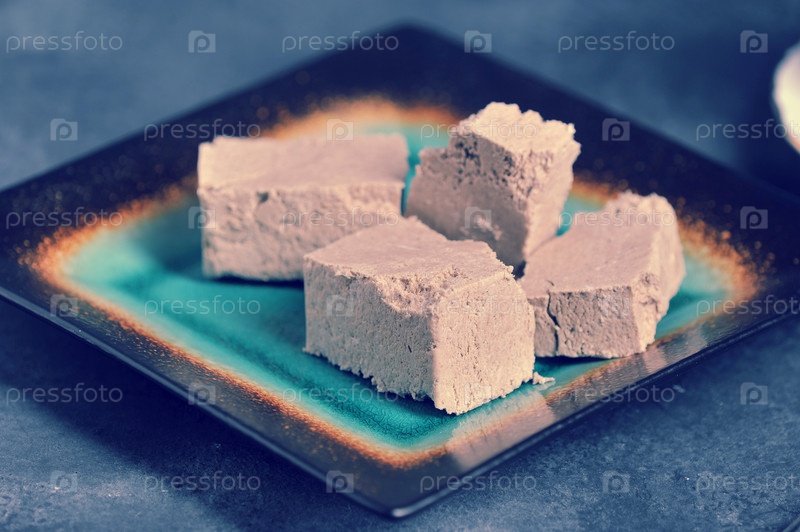 Халва нарезанная ломтиками на тарелке