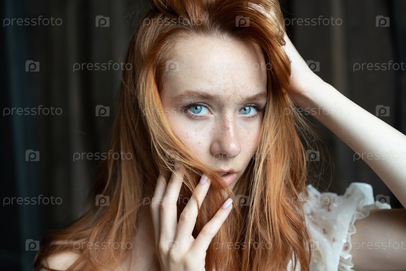 Портрет молодой красивой женщины с рыжими волосами