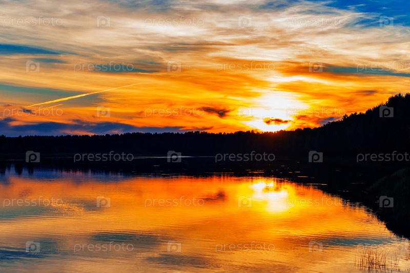 Закат в облаках над озером
