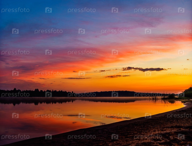 Красочный закат на реке летним вечером