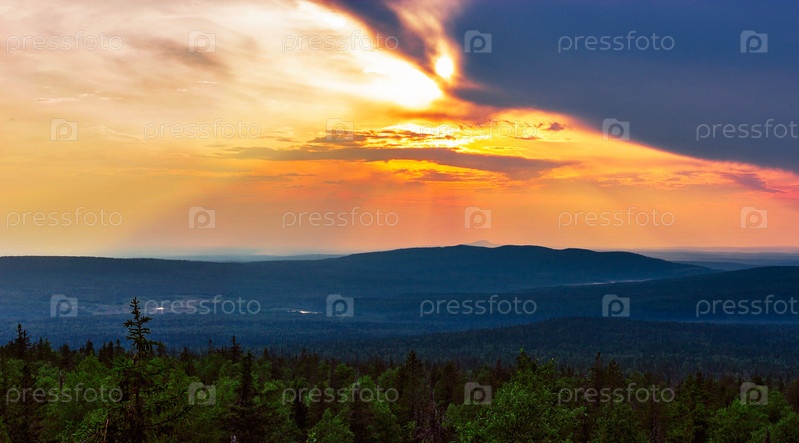 Вид с высоких гор на тайгу
