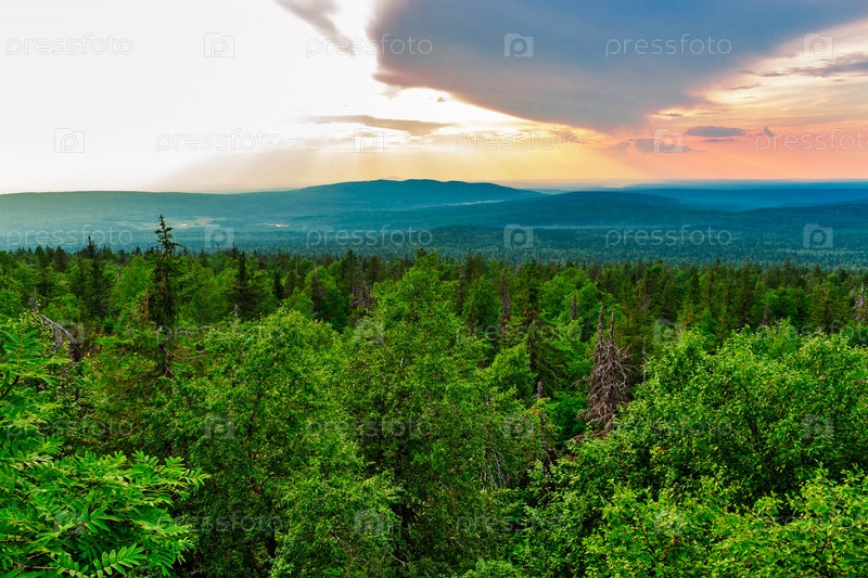 Вид с высоких гор на тайгу
