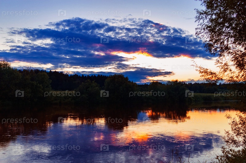 Закат в облаках над рекой