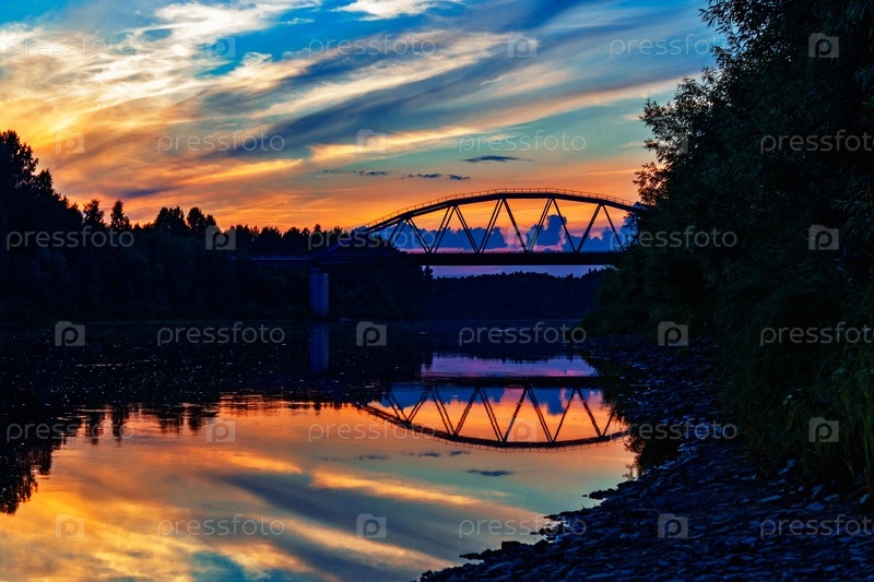 Закат в облаках над рекой