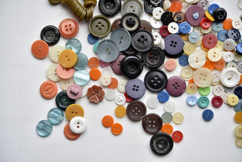 Разноцветные кнопки на белом фоне. Круглые пуговицы от одежды