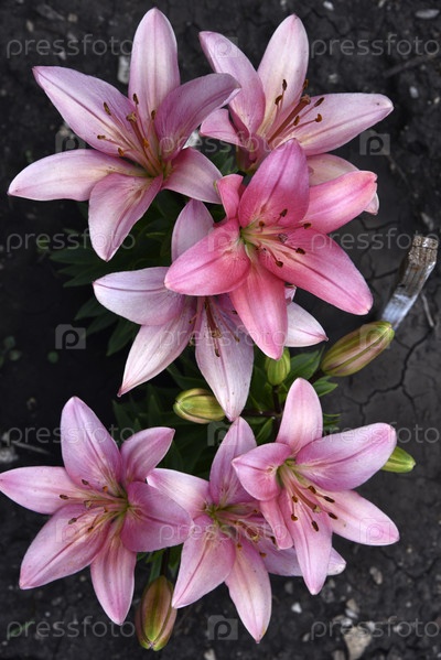 Красные белые и оранжевые цветы лилии в саду. Лилии - большие цветы. Красивые цветы крупным планом