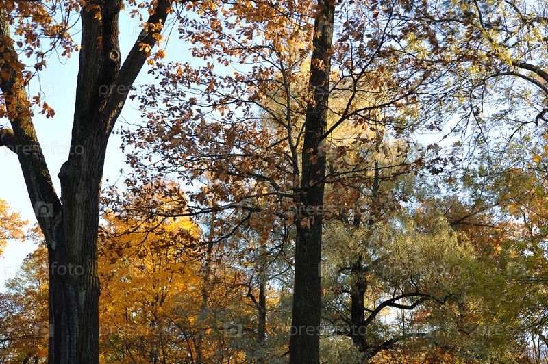 Осенние кроны деревьев с опавшими листьями