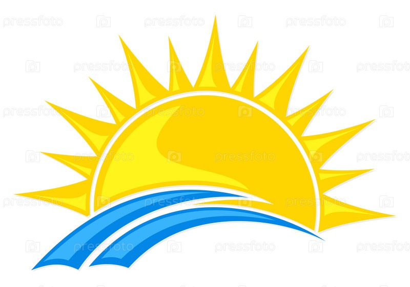 Стилизованный Логотип рассвета солнца с голубой волной