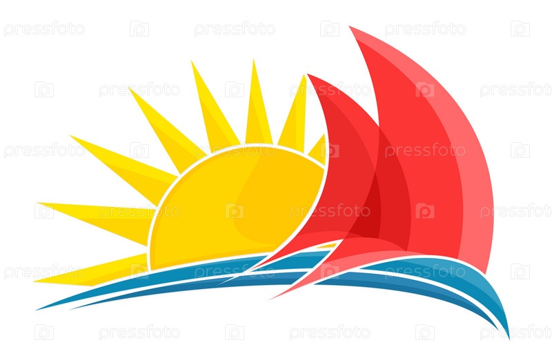 Логотип парусника с голубой волной и рассветом солнца