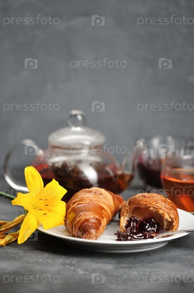 Завтрак с круассанами - чай, круассаны, Лили