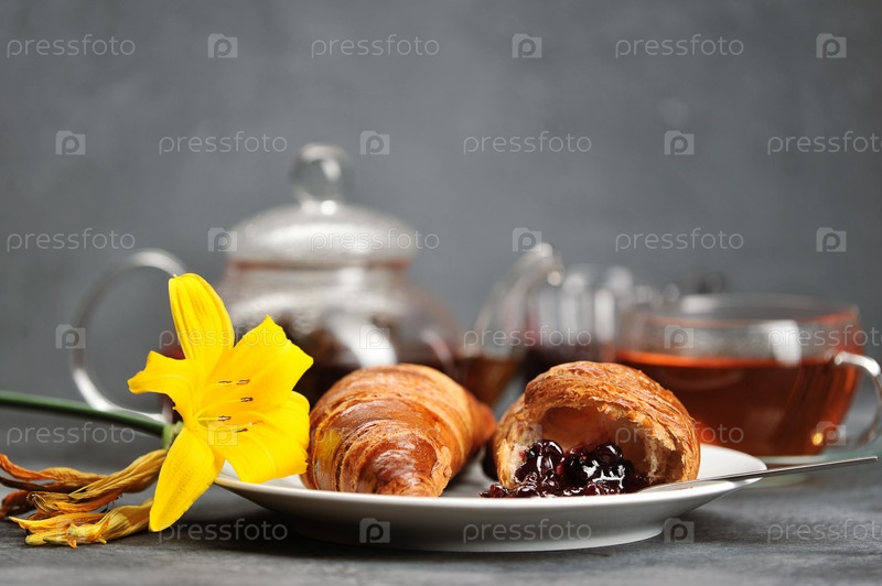 Завтрак с круассанами - чай, круассаны, Лили