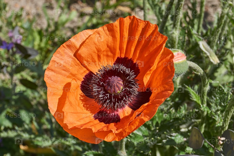 В саду цветет мак декоративный (лат. Papaver) многолетнее травянистое растение, вид рода Папавер семейства Маковых (Papaveraceae)