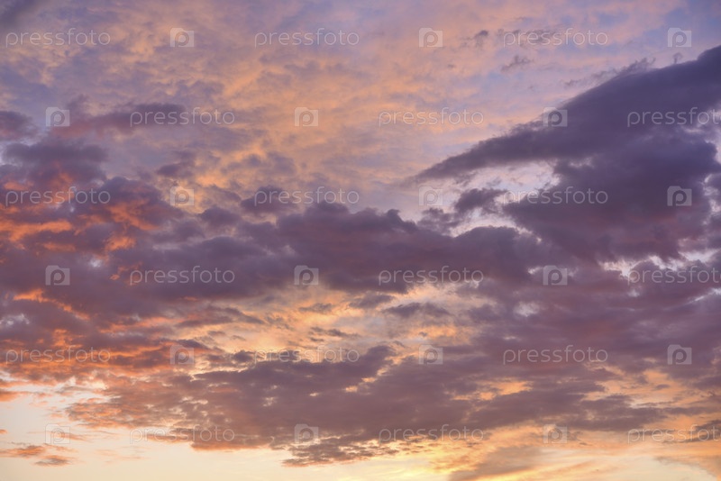 Закатный вечер и красно-синие облака в небе. Красивые облака вечером