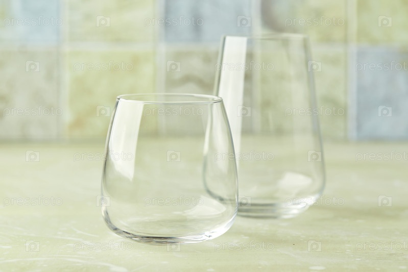 Два пустых стакана для воды или коктейлей на светлом столе. Стаканы для напитков. Концепция напитка