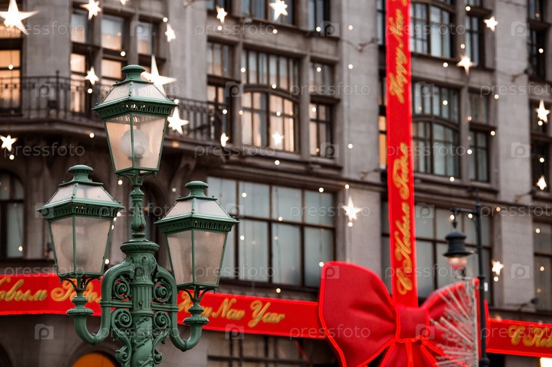 Новый год. Новогодние украшения на улицах Москвы. Рождественские праздники, зимний пейзаж. Оформлен магазин ЦУМ в центре Москвы. Россия, Москва, 2023 г