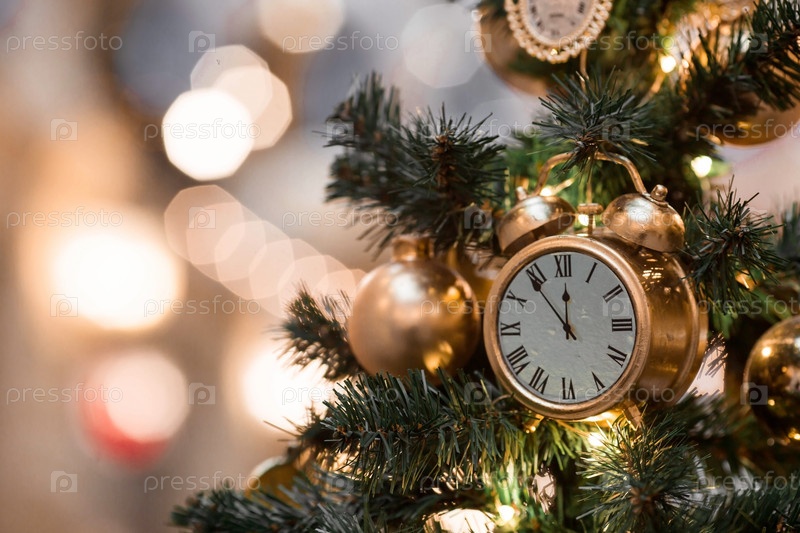 Обратный отсчет до полуночи. Часы последних мгновений перед Новым годом. Стрелки часов без пяти минут 12. Красивый фон на Новый год или Рождество 2024