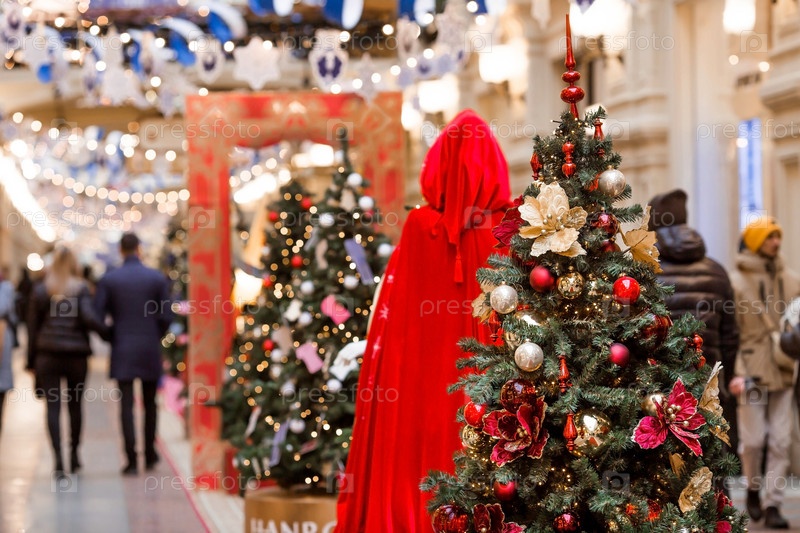 Россия, Москва, январь 2023 года. Праздничные украшения города к новому 2024 году. Центральный универмаг на Красной площади. Парад елок в магазине ГУМ
