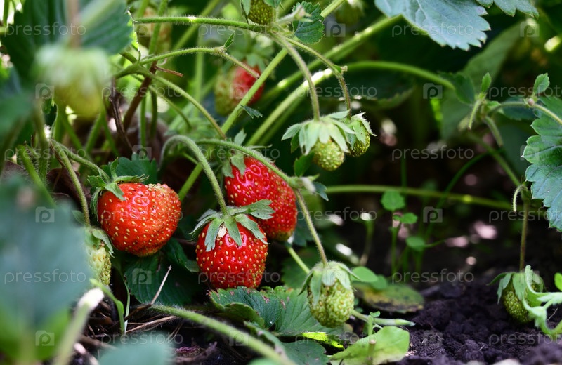 Свежая доморощенная клубника в миске между кустами клубники. Спелые красные ягоды, собранные в домашнем саду. Летние фрукты яркий красочный фон