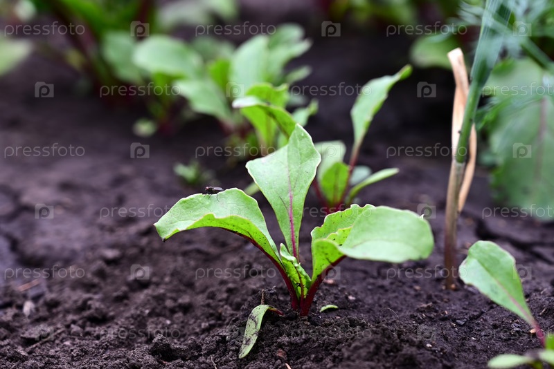 Молодые ростки свеклы на грядке