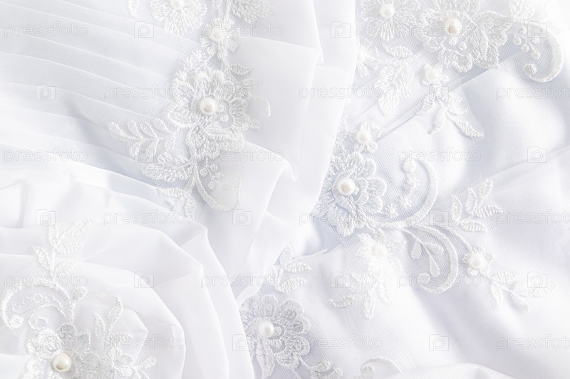Тканевые детали платья невесты, красивая вышивка и драпировка. белые воздушные складки шелковой ткани. вышивка жемчугом