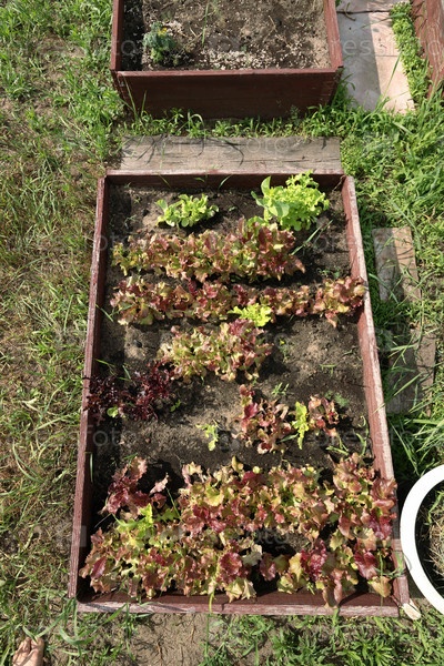 Грядки с зеленью и овощами. Фермерство в деревне