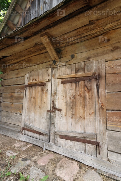 Старый бревенчатый сарай. Ворота заперты