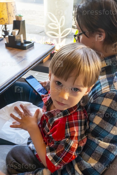 Портрет ребенка с отцом, рисующим карандашами в кафе
