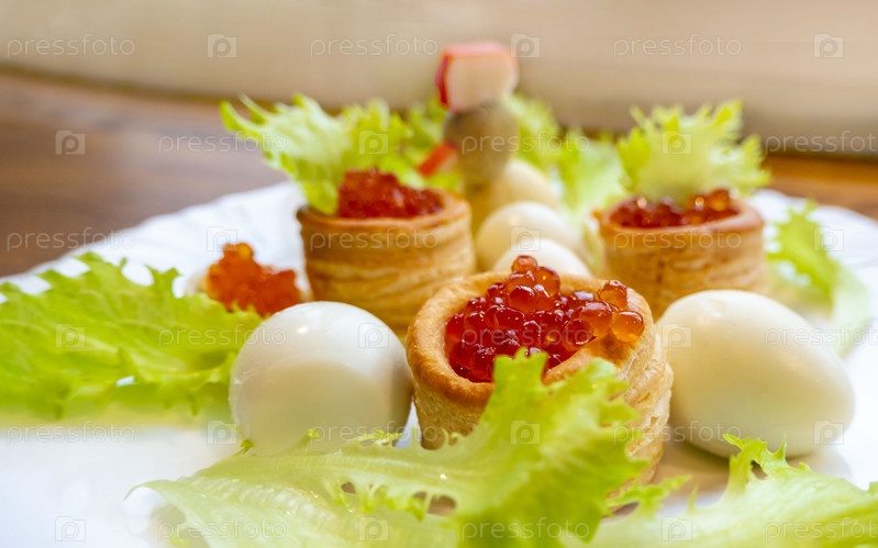 Крупный план закуски из икры и сливочного сыра на крекерах