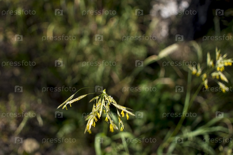Фоны травянистые цветы Зеленая трава крупным планом против заходящего солнца. Костер безостый