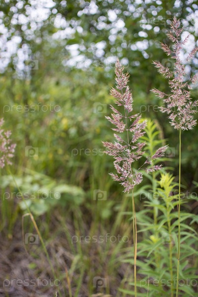 Цветущие колосья сорняков. натуральный газон на ярком солнце