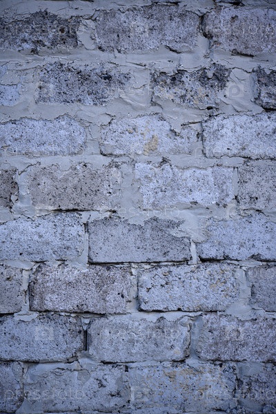 Серая стена из больших блоков. Серый шлакоблок. Стена промышленного здания