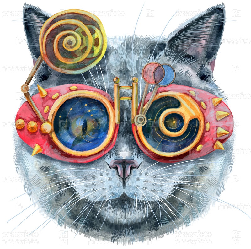 Милый кот. Кот для графики на футболках. Акварельная британская короткошерстная иллюстрация